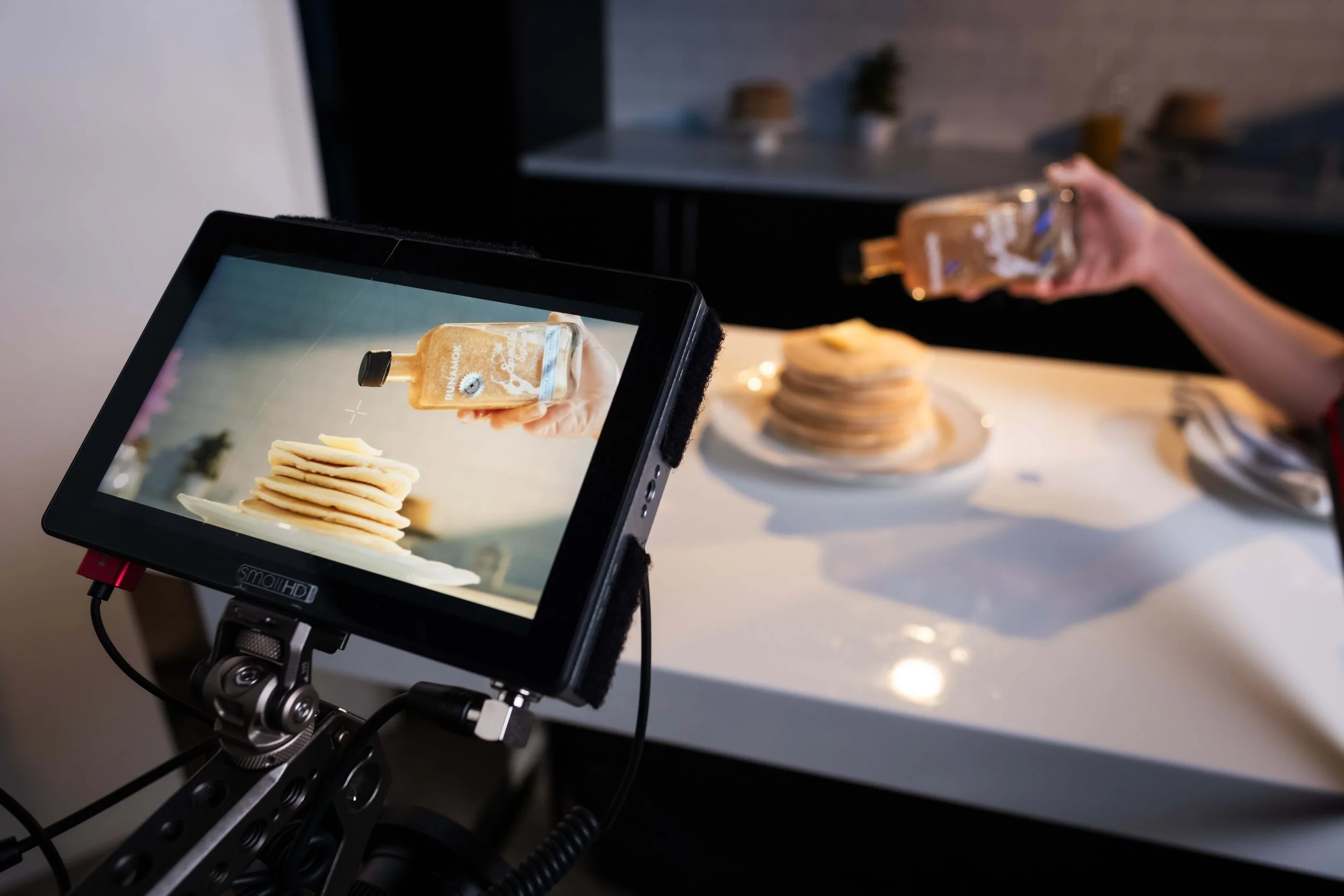 The concept for Runamok’s Sparkle Syrup was to highlight its playful, magical quality, treating the bottle like a performer on stage. Positioned center stage in the spotlight, the product became the focus of a carefully orchestrated visual story. During the dolly push, a dynamic lighting cue transformed the scene from a bright, sunlit morning into a theatrical stage environment, casting a dramatic spotlight that accentuated the suspended sparkles in the syrup. The one creative requirement - showing the bottle being shaken upside down - was integrated seamlessly, revealing how to activate the glittering effect while adding an energetic, interactive moment. By pairing theatrical lighting with this playful action, we crafted a piece that celebrated Runamok’s sense of fun while elevating the syrup with theater, charm, and delight.
